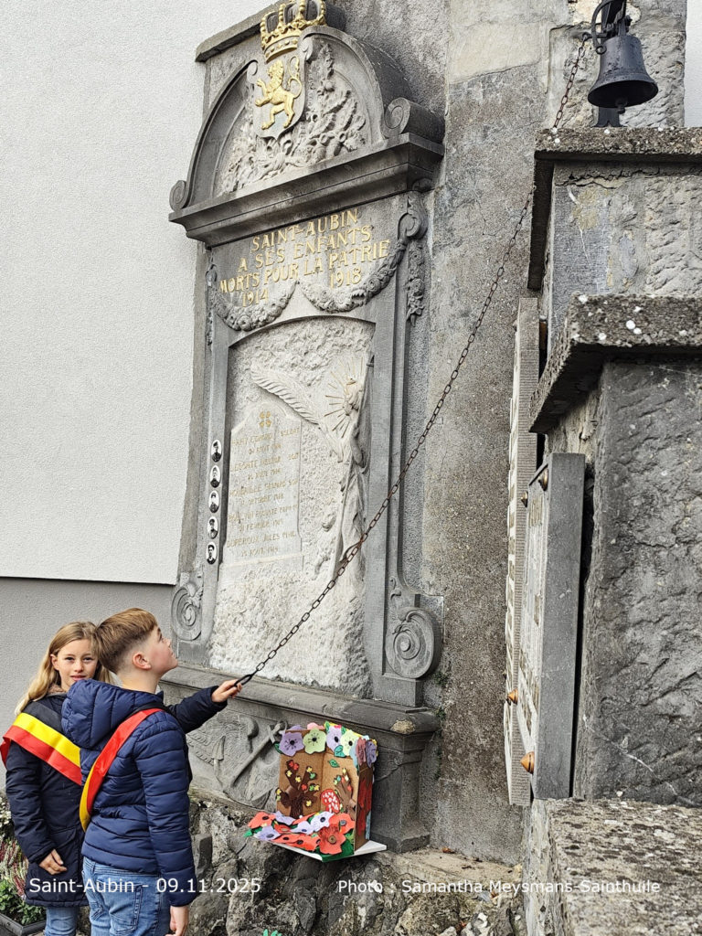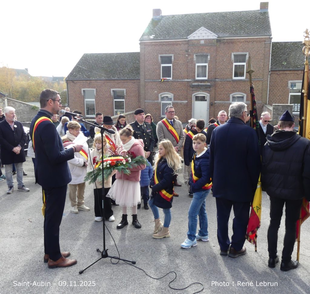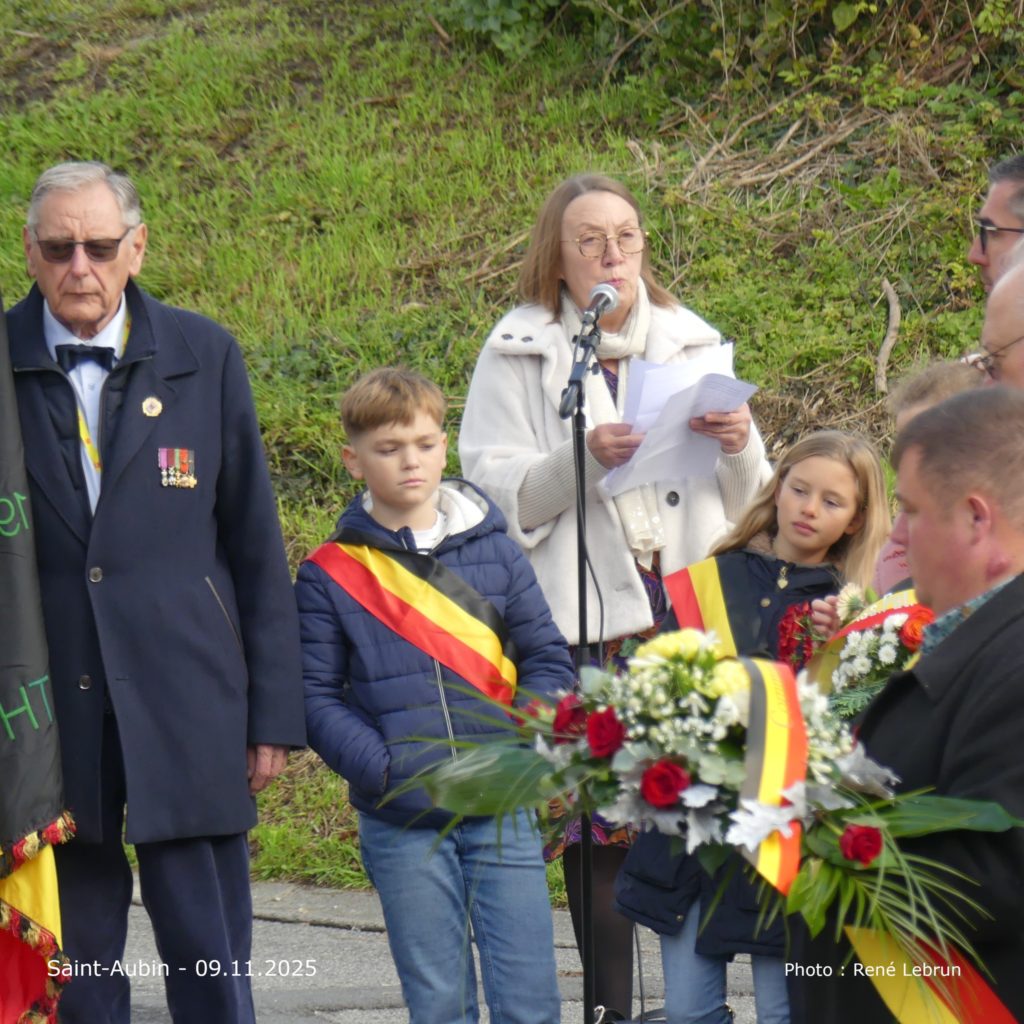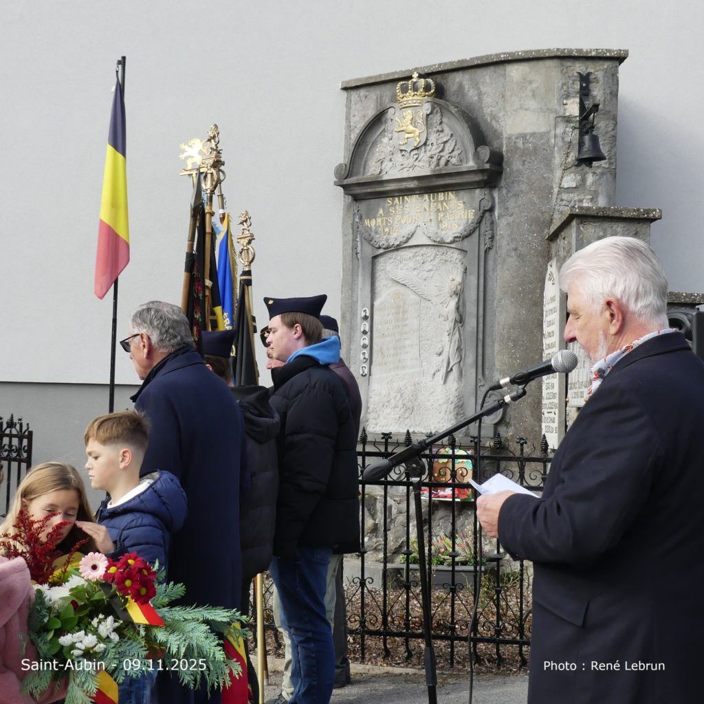 Que ce monument, né du chagrin et de l’espérance, demeure pour les générations futures le symbole de la paix et du courage des Saint-Aubinois.