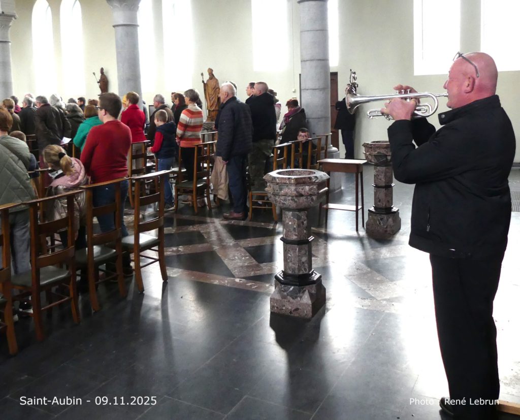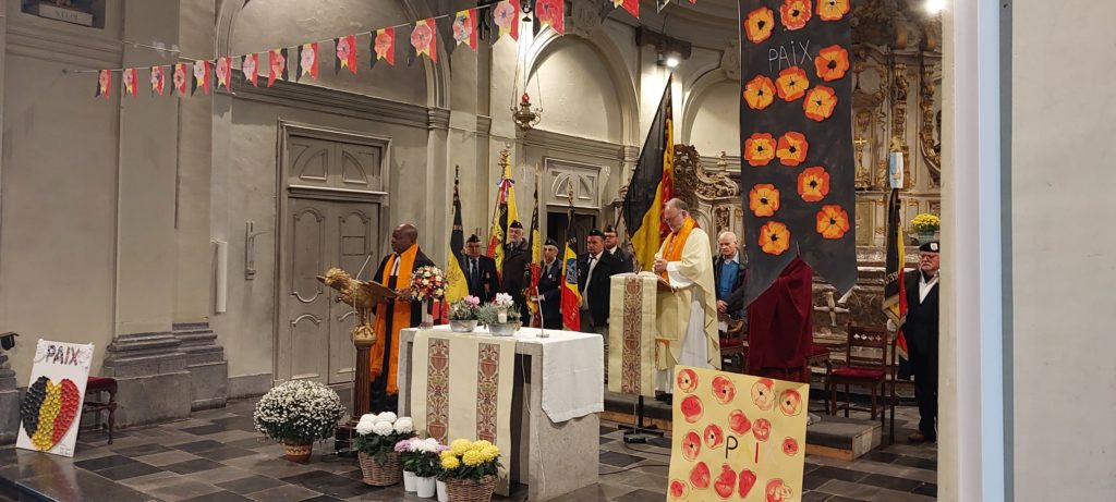 Des chants liturgiques, des paroles de paix et des intentions de prière de circonstances, porteuses d’espoir de paix, ont ponctué la célébration. De même, la sonnerie « Aux Champs », par le chef de musique M. Christophe Cabus et la « Brabançonne » par l’organiste, M. Guillaume Andris.